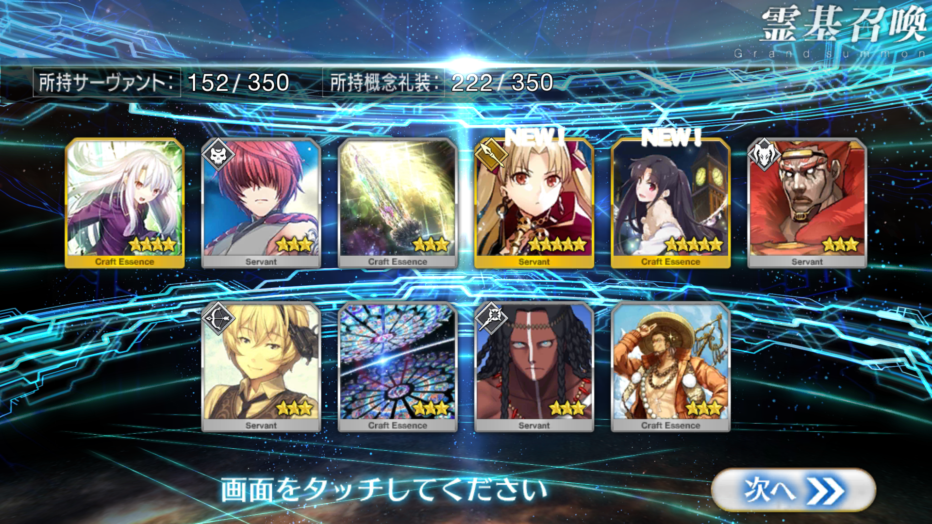 でも流石に 1 枚というのはナンだし、威力的にも NP 減少対策のためにも宝具 2 は欲しいぞと思って回したら、次の 10 連でアナ嬢が。