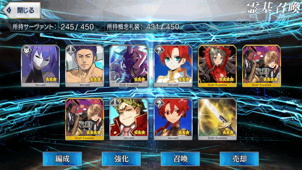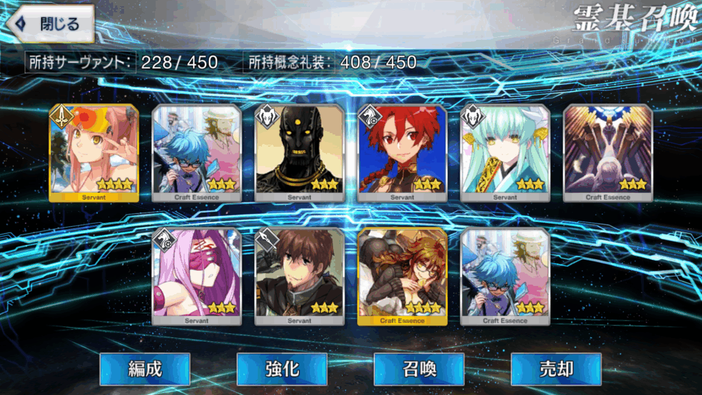 その他、イベ限礼装がバシャーンバシャーンと来て、最初の10連はこんな感じに。